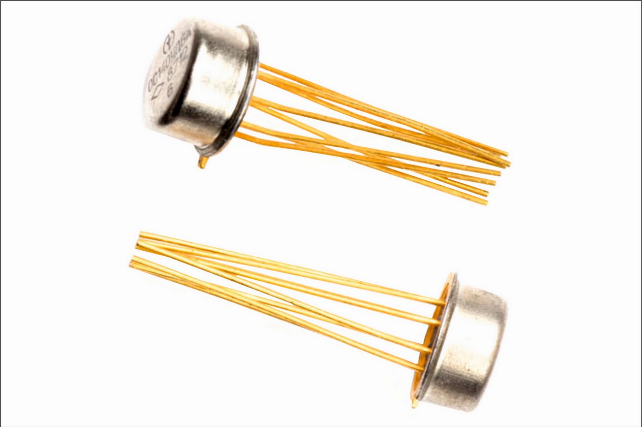Микросхемы серии 140 и подобные, 8 позолоченных выводов, круглые. При отсутствующих выводах у б/у -20%